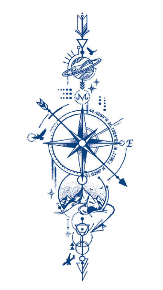 Szabad Vándor: Szárnyaló Madár és Iránytű Ideiglenes Tetoválás