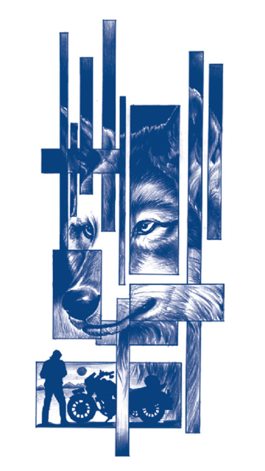 Szabad Utakon: Absztrakt Farkas és Motoros Portré Ideiglenes Tetoválás