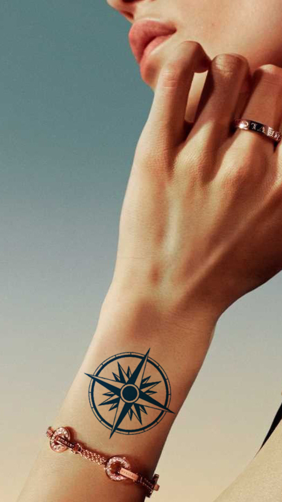 Találd meg a célodat és kövesd a csillagokat ezzel a klasszikus „Éjszakai Iránytű” ideiglenes tetoválással. Ez a minta egy tiszta vonalvezetésű navigációs tájolót ábrázol, amely a vezérlést, a reményt és a biztonságot szimbolizálja az utazások során. A letisztult dizájn azonnali, felismerhető és szimbolikus megjelenést biztosít. Ideális méretű a kézfejre, boka fölé, vagy a nyak tarkó részére – egy diszkrét, mégis jelentőségteljes kiegészítő azok számára, akik a kalandot és a céltudatosságot képviselik.