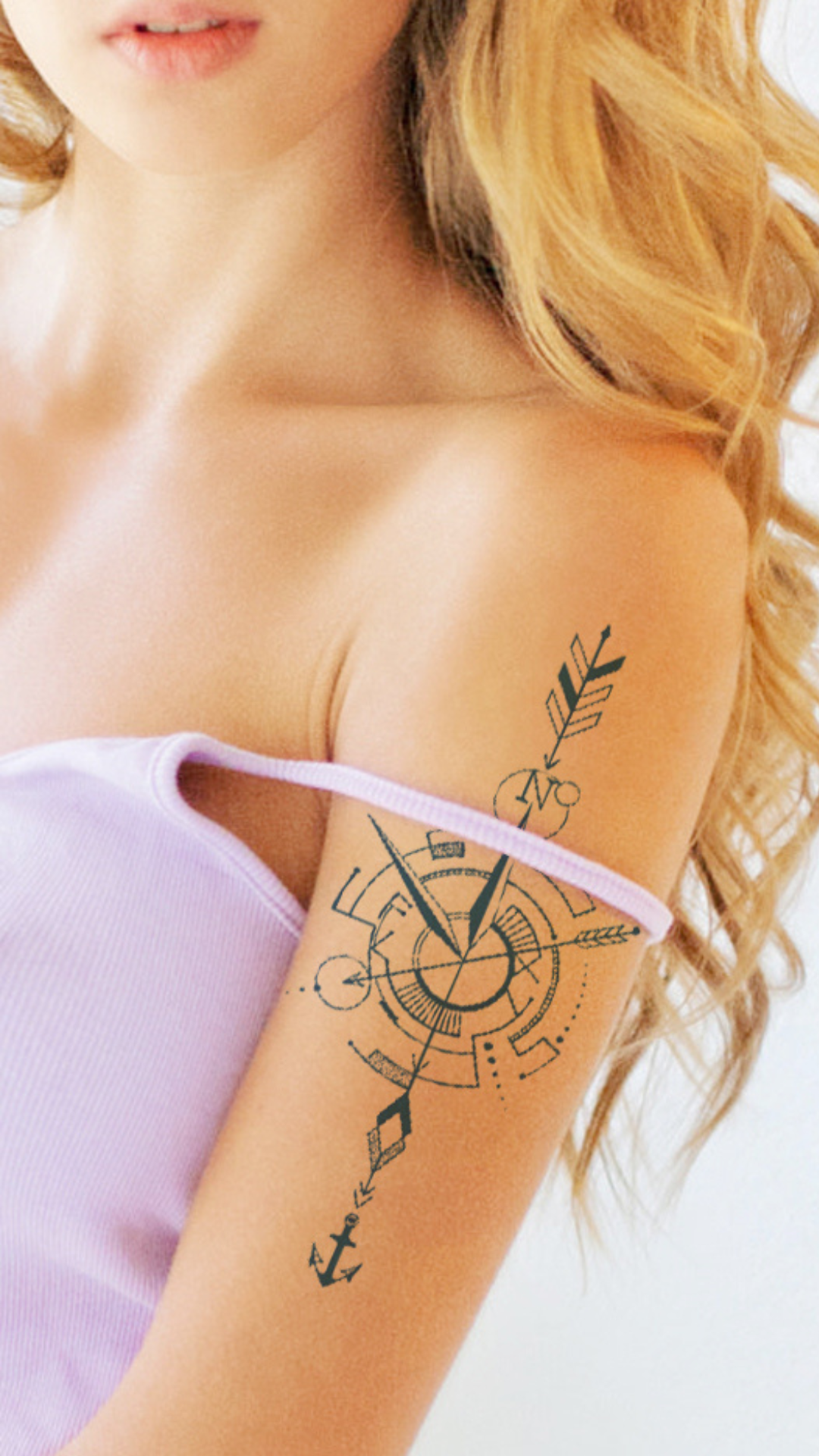 Találd meg a célodat ezzel a modern, futurisztikus megjelenésű iránytű ideiglenes tetoválással. Ez a dizájn egy klasszikus iránytű motívumot ötvöz minimalista, geometriai formákkal, pontozással és lendületes nyilakkal, amelyek a precizitást, a céltudatosságot és a modern utazást szimbolizálják. Az iránytű alatti apró horgony tovább erősíti a stabilitás és a biztonság érzetét. A letisztult vonalvezetés egy minimalista, de szimbolikus megjelenést biztosít a karra, a vállra vagy a lábszárra.