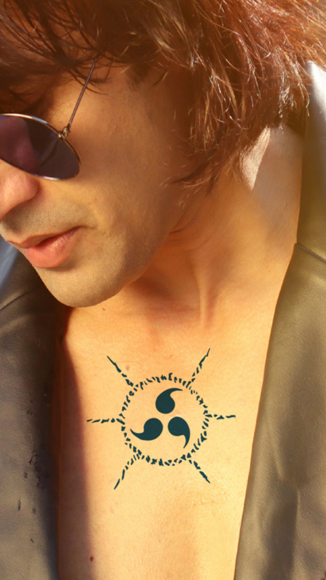 Válaszd a japán szimbólika és a rejtett energiák kifejezését ezzel a misztikus, kisméretű ideiglenes tetoválással. Az „Átokbillog” dizájn a Tomoe (három virgula/gombóc) szimbólumot ábrázolja, amelyet gyakran használnak a japán kultúrában, és amely a ciklikus mozgást, a szellemi energiát (Három Erő: Ég, Föld, Ember) szimbolizálja. Az Átokbillogot Orochimaru adta bizonyos karaktereknek, és különleges, gonosz chakrát ad nekik.
