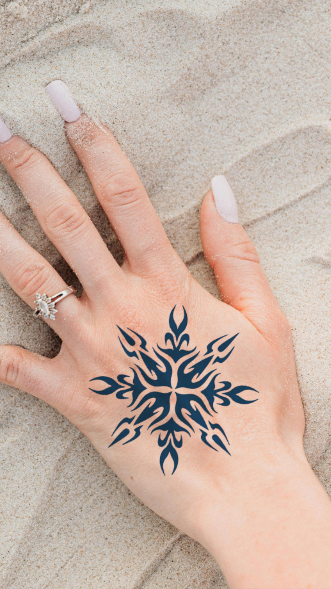 Válaszd az erő és a geometria egyedi kombinációját ezzel a feltűnő, szimmetrikus ideiglenes tetoválással. A „Törzsi Védőpajzs” dizájn egy absztrakt, hópehely- vagy csillagformájú motívumot ábrázol, amely modern törzsi stílusban van kivitelezve. A mintázat dinamizmust és a természet erejét sugallja, és a hagyományos védőpajzsokat és szimbólumokat idézi. A részletgazdag forma ideális a kézfejre, a tarkóra vagy a vállra, ahol azonnali, karakteres megjelenést biztosít.